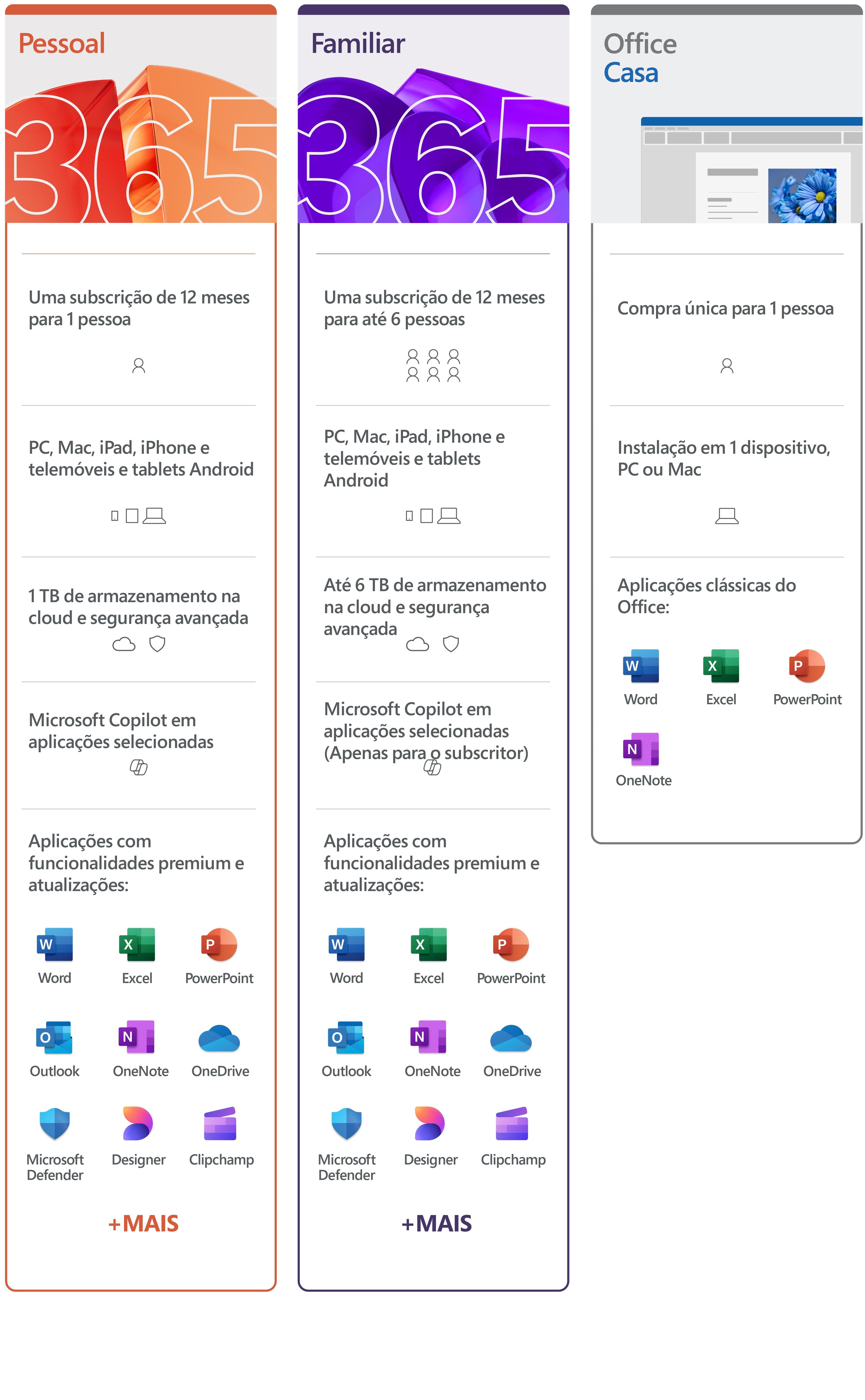 Ideal para quem busca combinar produtividade, segurança e mobilidade, o Microsoft 365 Family + McAfee Total Protection é a escolha completa para proteger e otimizar o uso de dispositivos pessoais e familiares.